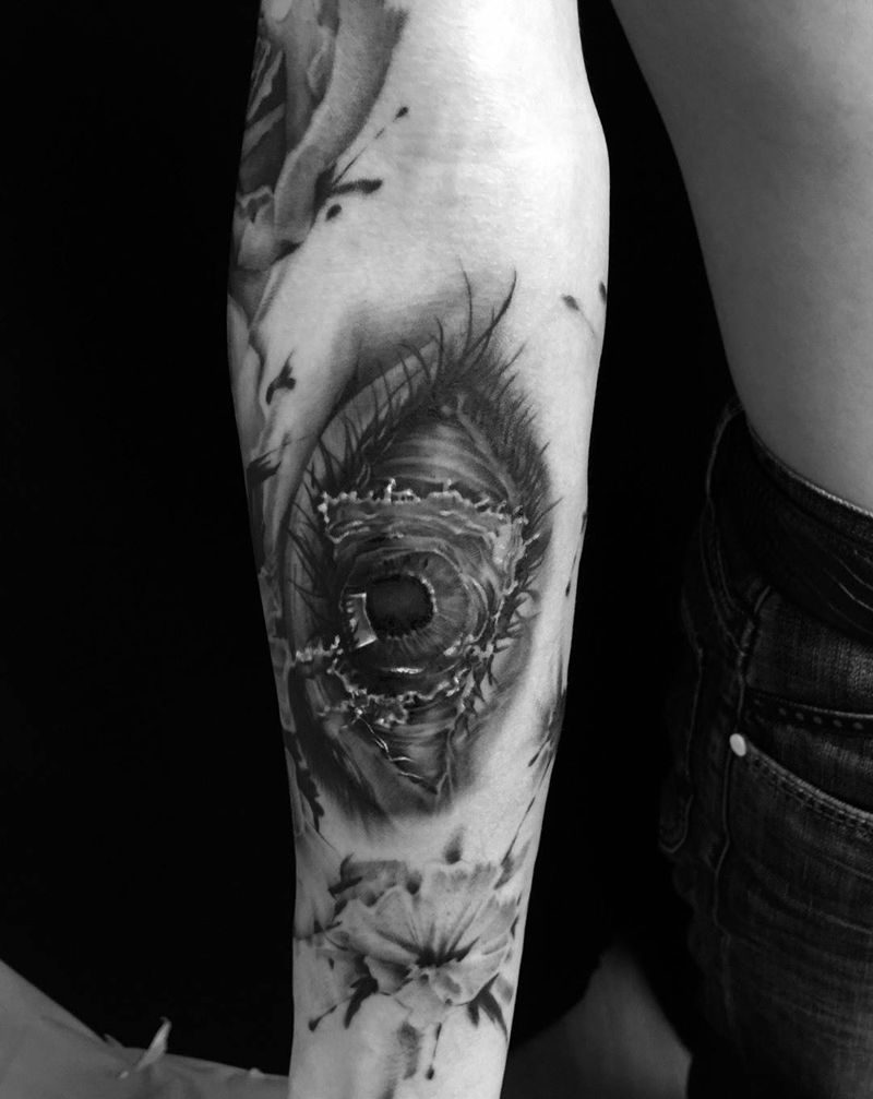 • 手背潮流时尚的玫瑰花眼睛纹身图案
