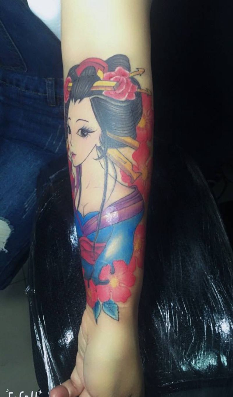 当前位置: 首页 >黑龙江省大庆市纹身店-龙啸堂纹身纹身图案>艺妓小臂纹身图片