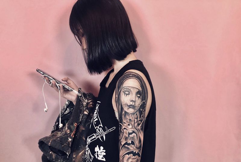 昨日作品暗黑修女纹身图片_手臂欧美写实暗黑纹身图案