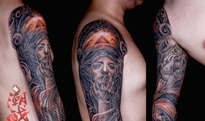当前位置: 首页 >上海市纹身店-上海纹身潮战TATTOO纹身图案>写实花臂纹身图片_成品手臂欧美肖像写实人物静物纹身图案