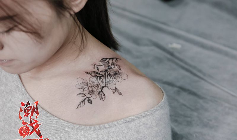 疤痕遮盖纹身图片_肩部欧美写实点刺花遮盖纹身图案
