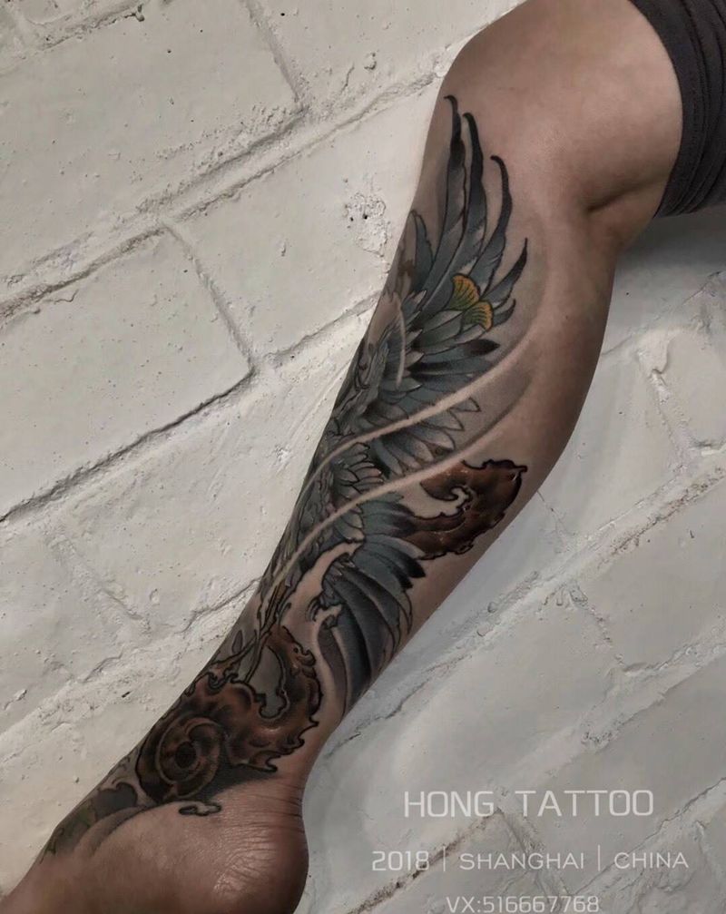 • T网红王老大花腿龙纹身图片_腿部新传统纹身图案