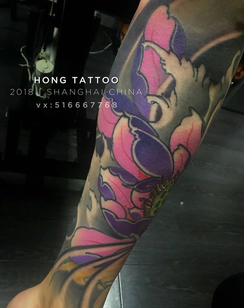 当前位置: 首页 >上海市纹身店-上海弘刺青纹身图案>鲤鱼荷花包小腿 / work:弘明纹身图片
