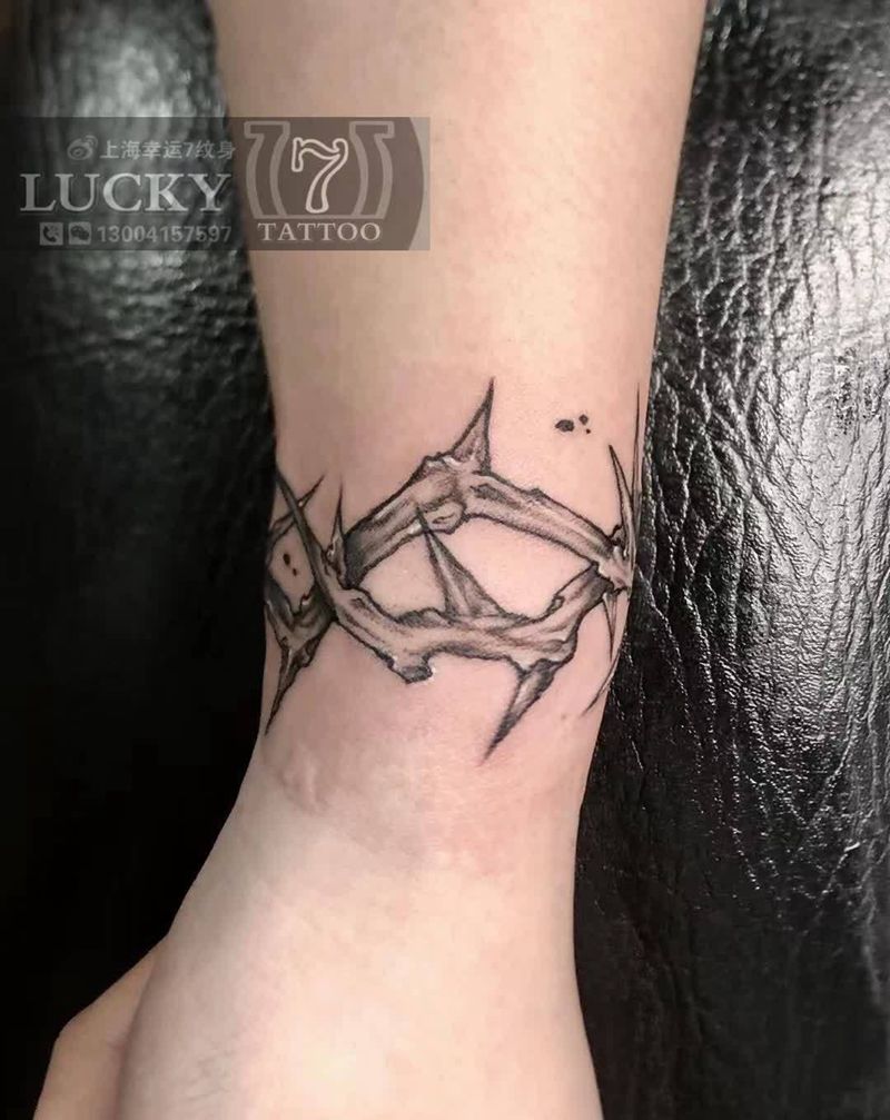 荆棘臂环|幸运7纹身纹身图片_点刺手腕暗黑纹身图案
