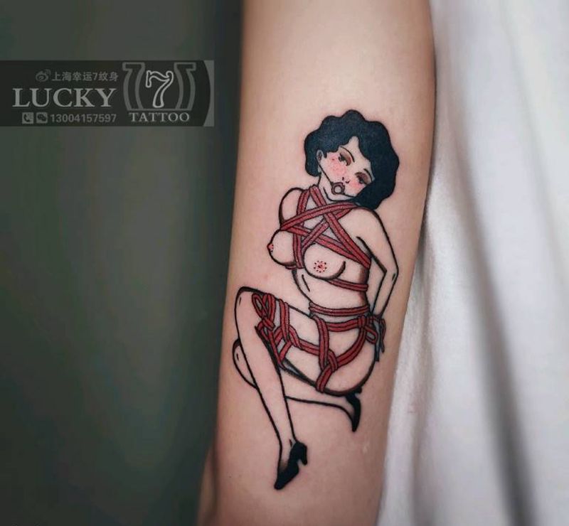 捆绑女郎|幸运7纹身纹身图片_手臂纹身图案