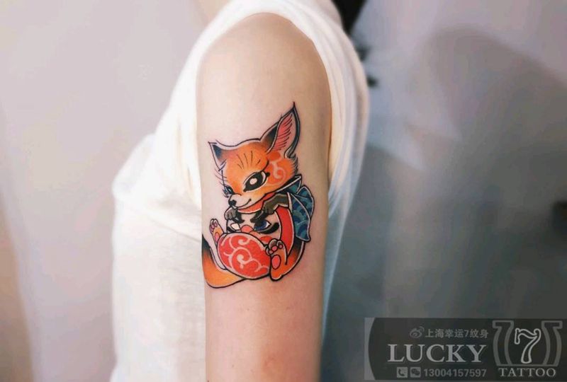 狐狸|达摩|幸运7纹身纹身图片_手臂New SchoolOld School纹身图案