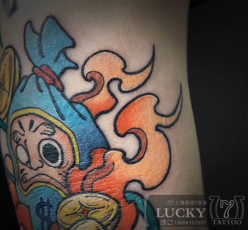 招财小达摩|幸运7纹身纹身图片_手臂New School纹身图案