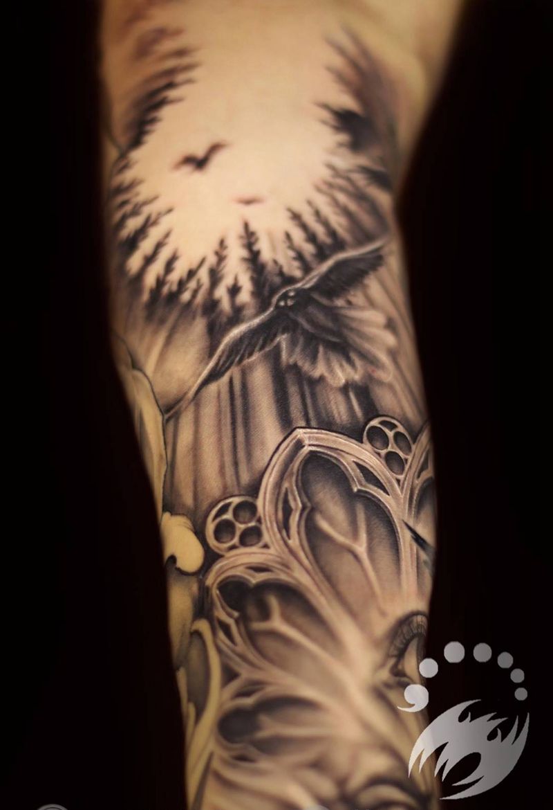 当前位置: 首页 >黑龙江省牡丹江市纹身店-雕金堂刺青纹身图案>欧美花臂作品by阿开.纹身图片