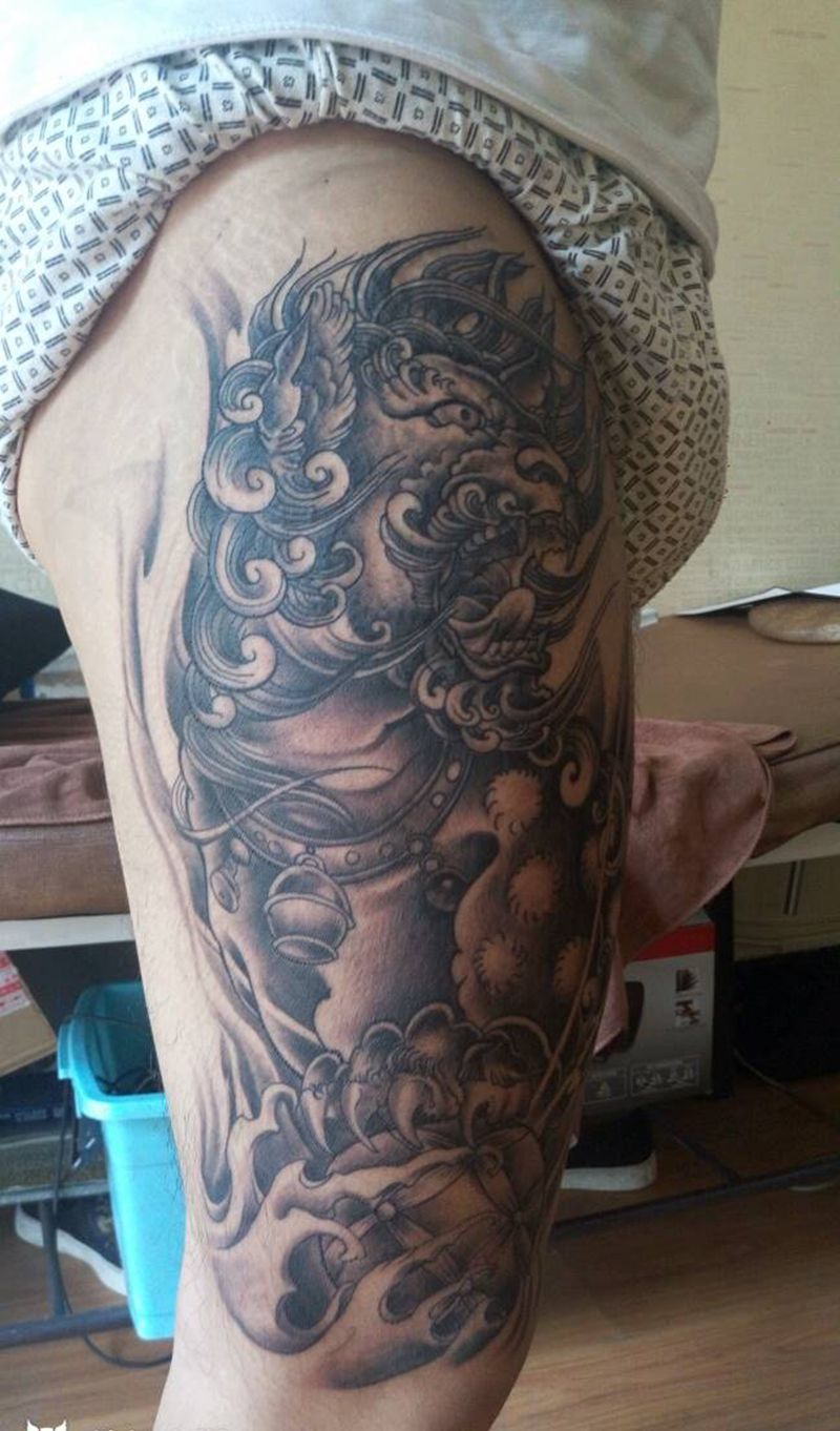 当前位置: 首页 >上海市纹身店-臻簪刺青纹身图案>唐狮子纹身图片_腿部传统动物成品纹身图案
