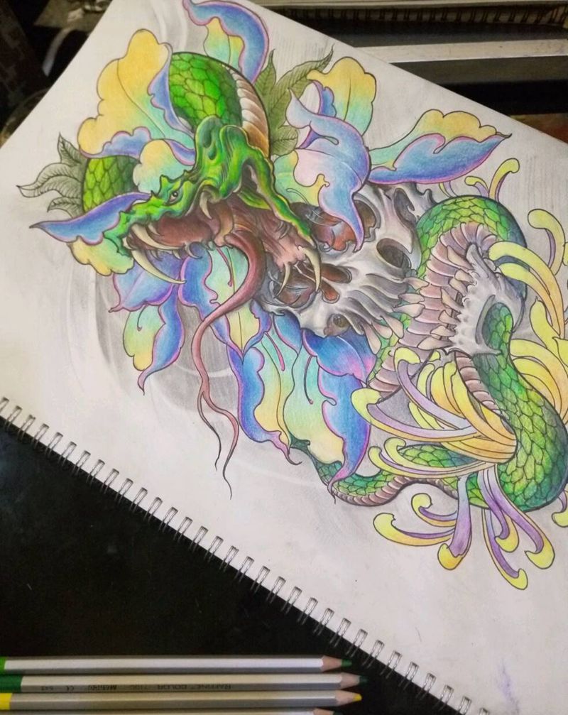 蛇与骷髅手稿纹身图片_手稿纹身图案