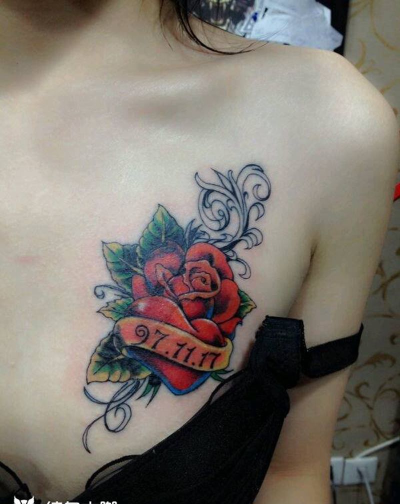 • 女性大花胸纹身_43张霸气漂亮的女性大花胸纹身图案作品