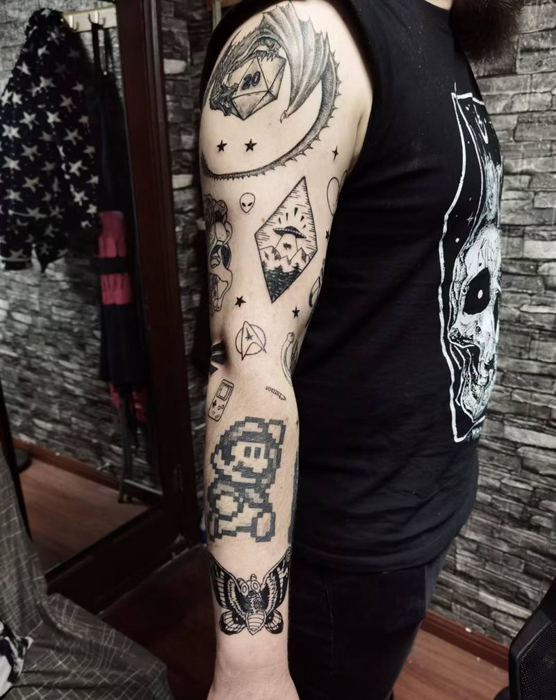 当前位置: 首页 >上海市纹身店-尹苏刺青纹身图案>游戏元素拼接花臂纹身图片_手臂卡通纹身图案