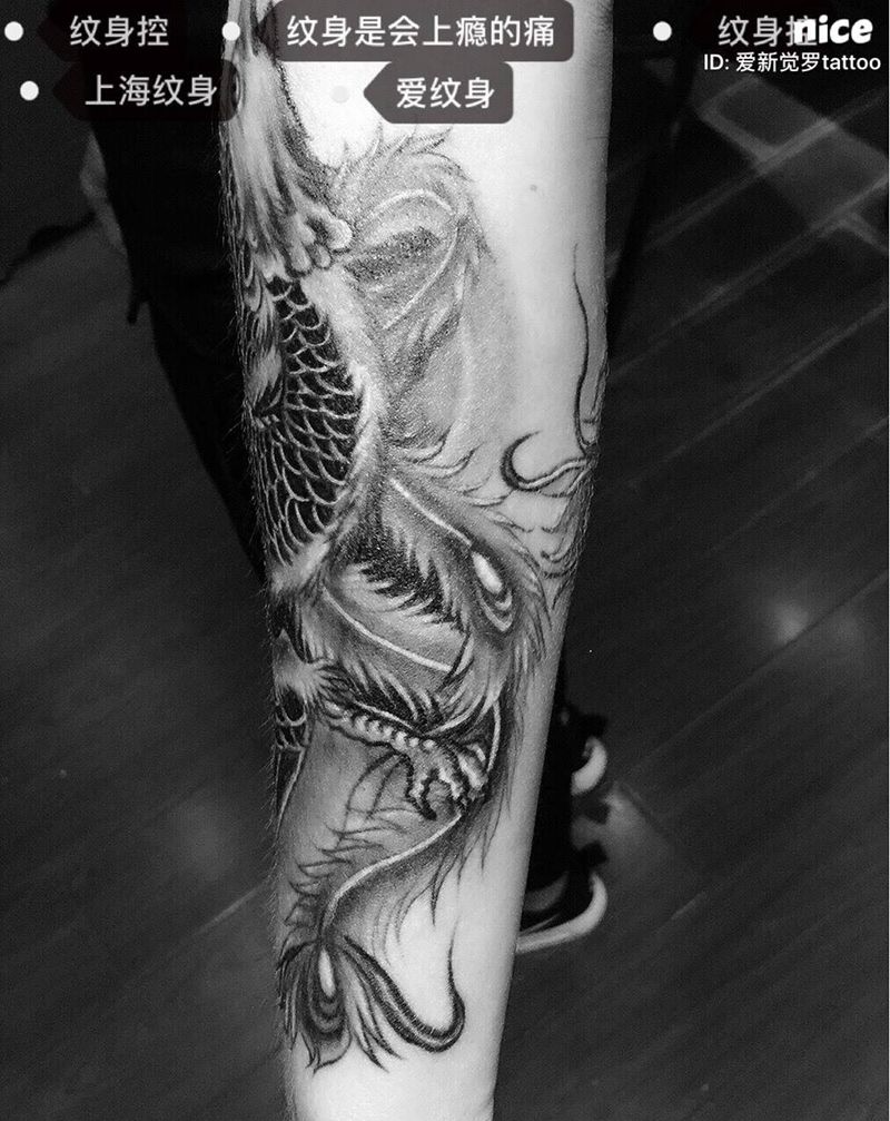 • T网红王老大花腿龙纹身图片_腿部新传统纹身图案