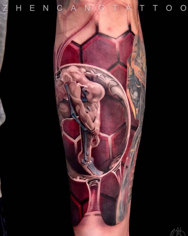 当前位置: 首页 >上海市纹身店-针藏刺青纹身图案>超体纹身图片_手臂欧美写实超现实赛博朋克彩色写实纹身图案