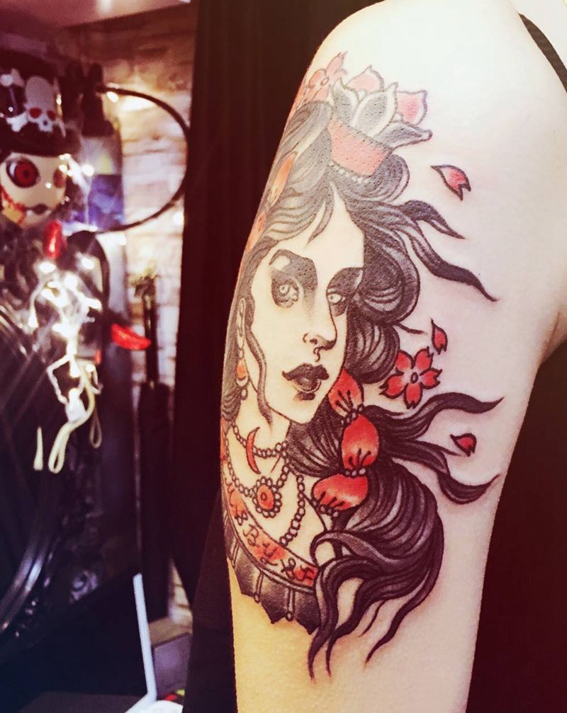 大臂school纹身图片_成品手臂欧美原创人物纹身图案