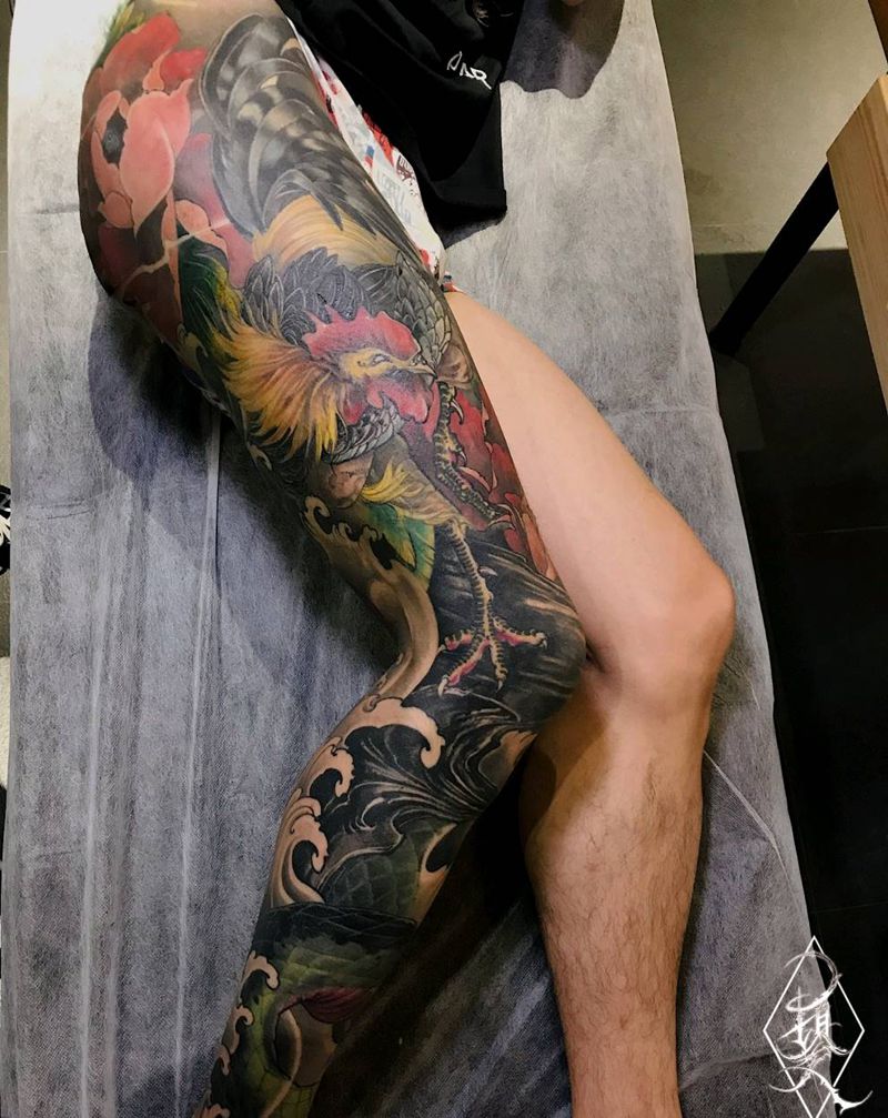 当前位置: 首页 >上海市纹身店-顷久Tattoo纹身图案>传统整腿纹身图片_腿部新传统蛇鸡纹身图案