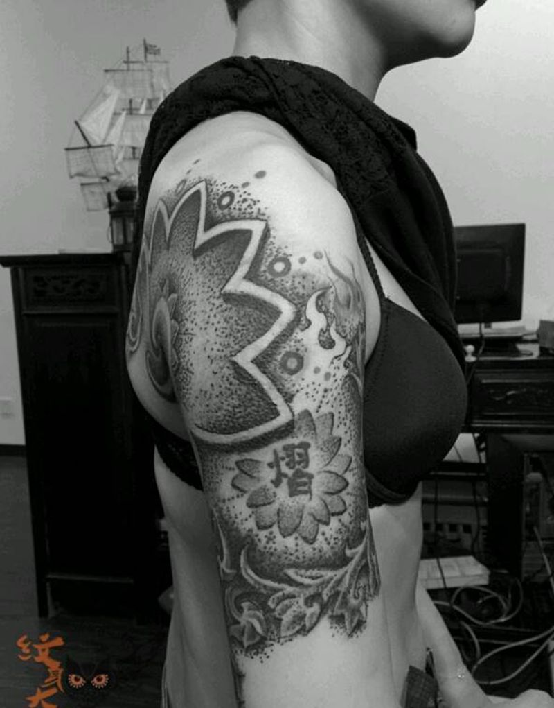 • 纹身吧推荐的披肩图腾半胛纹身图案作品展示