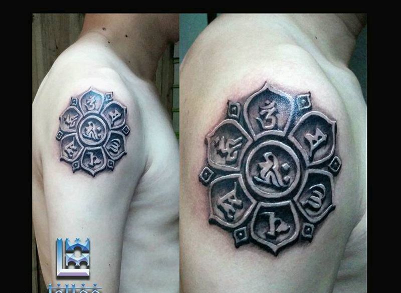 六字真言纹身图片_手臂习俗几何原创成品纹身图案