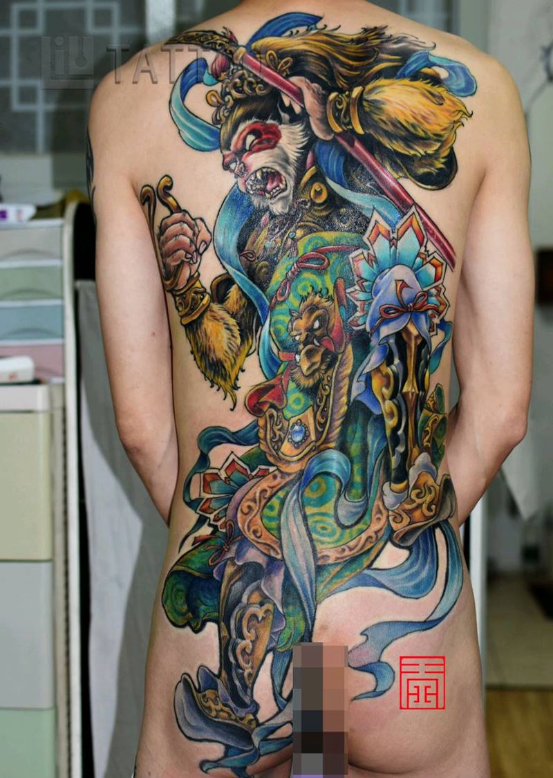黑灰满背纹身图案