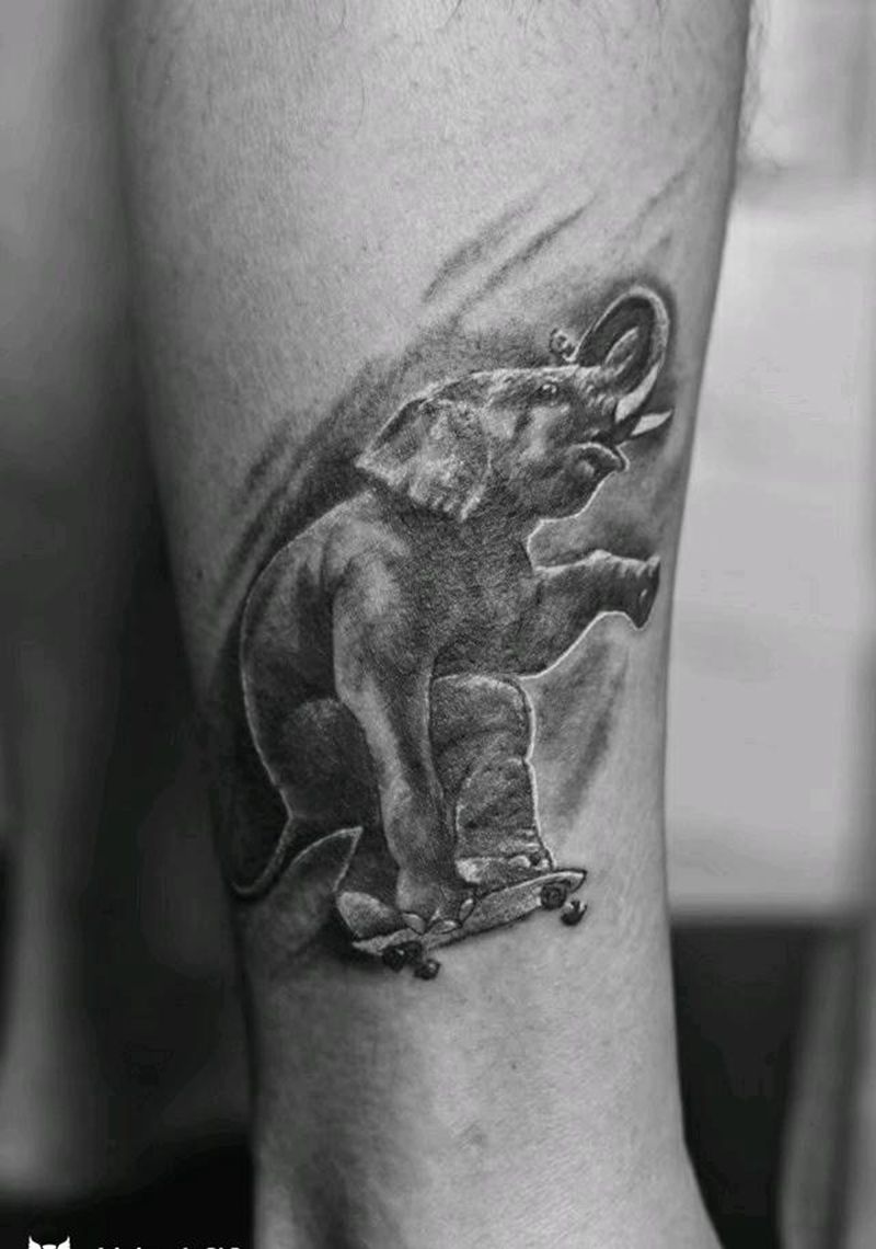 • T包小腿吹火男+阿多福纹身图片_腿部老传统新传统吹火男阿