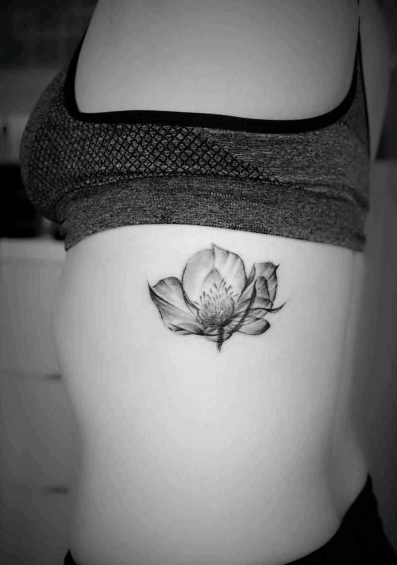• 时尚性感的腹部莲花纹身图案