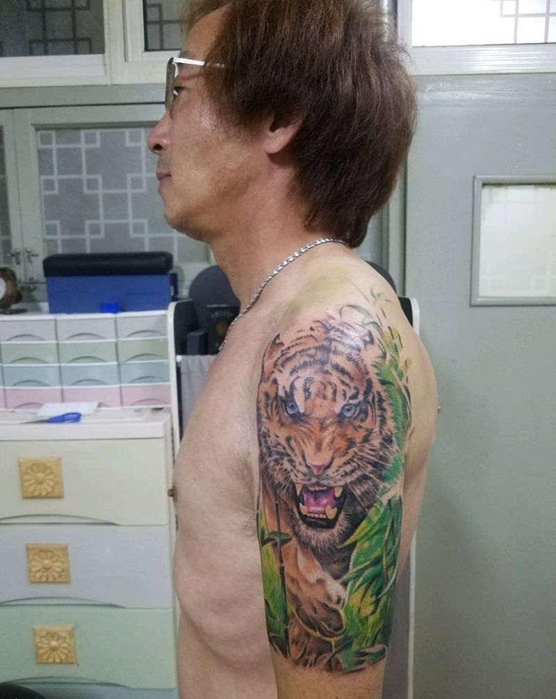 虎(顾客57岁来自上海)纹身图片_肩部手臂欧美写实动物原创纹身图案