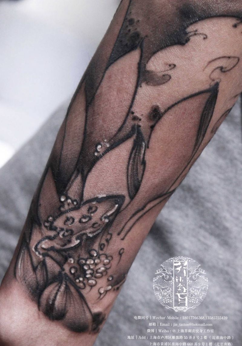 飛動珠落下——纹身图片_手稿成品原创植物传统欧美清新国画手臂腿部纹身图案