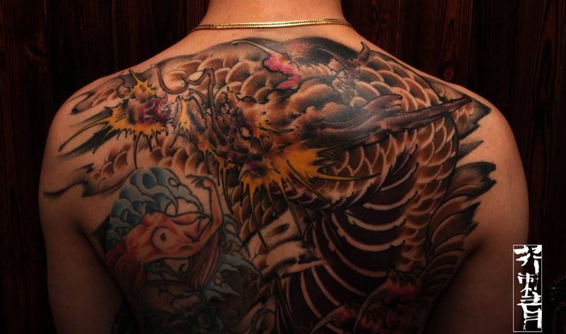 • T云龙九郎纹身图片_背部老传统云龙九郎纹身图案