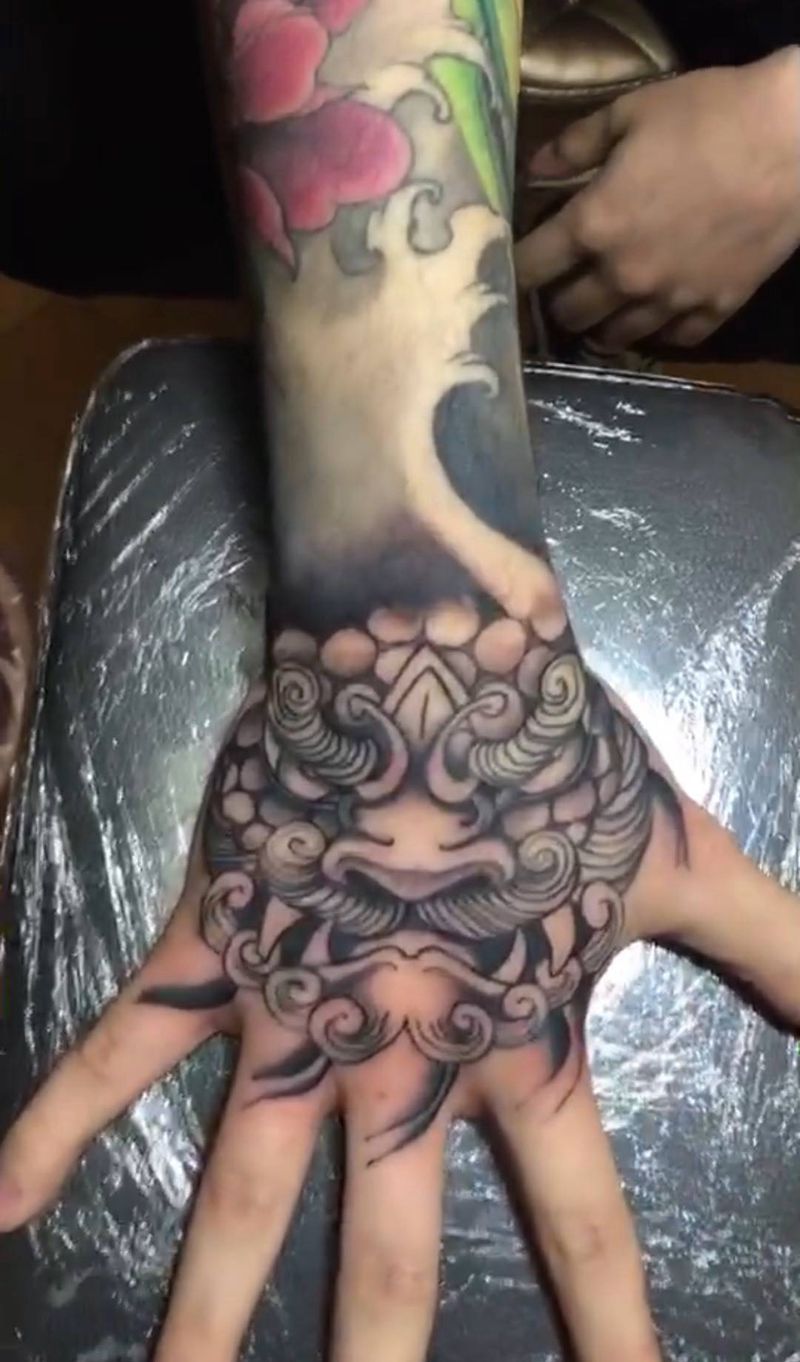 当前位置: 首页 >上海市纹身店-影刺青纹身图案>唐狮纹身图片_成品手部传统动物纹身图案