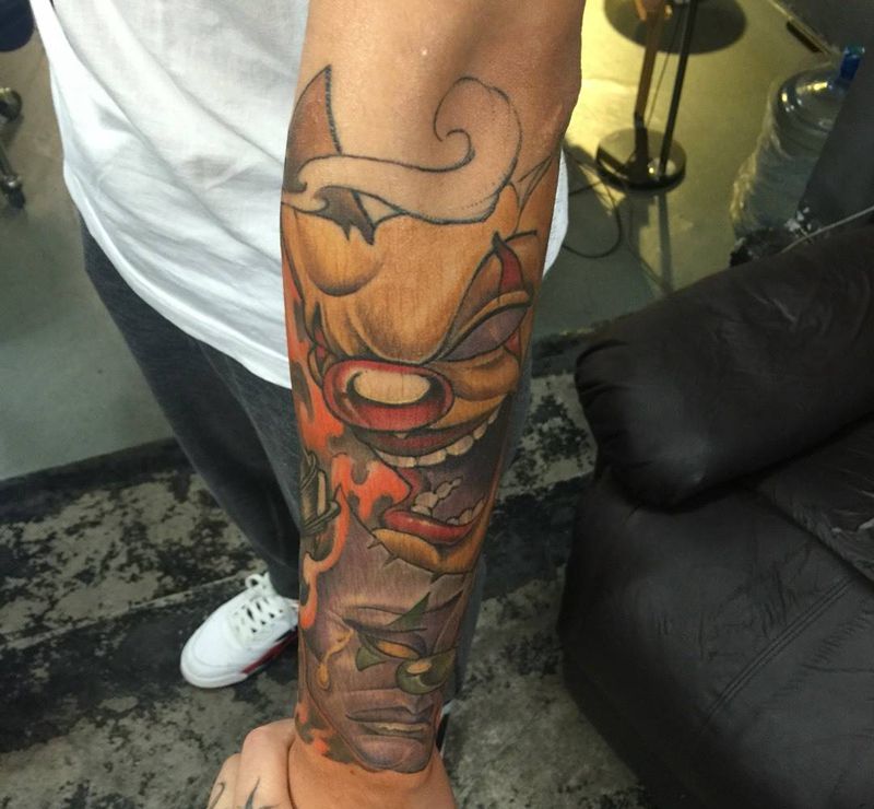 当前位置: 首页 >上海市纹身店-上海任刺青纹身工作室纹身图案>恢复好半年后的骷髅小丑面具纹身图片_成品写实欧美清新肖像手臂人物原创鬼神腿部纹身图案