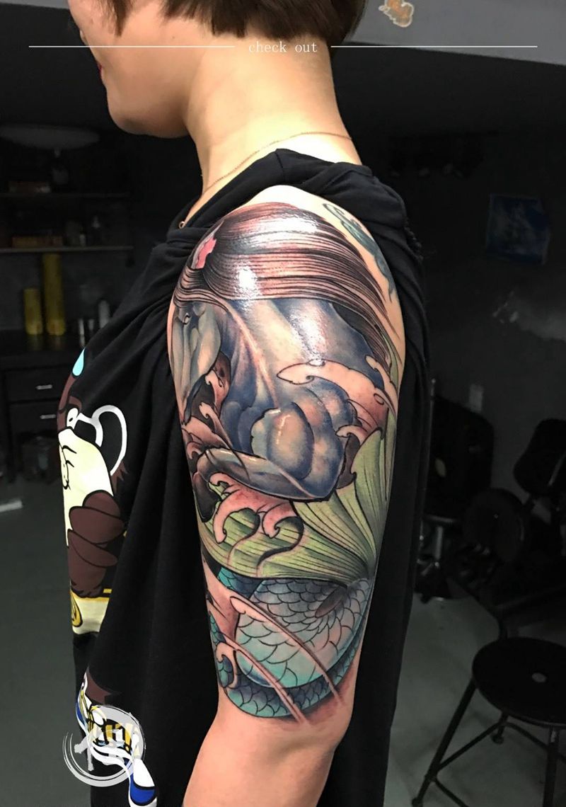 当前位置: 首页 >上海市纹身店-上海任刺青纹身工作室纹身图案>生肖马+摩羯座纹身图片_清新传统成品肩部手臂动物原创鬼神情侣纹身图案