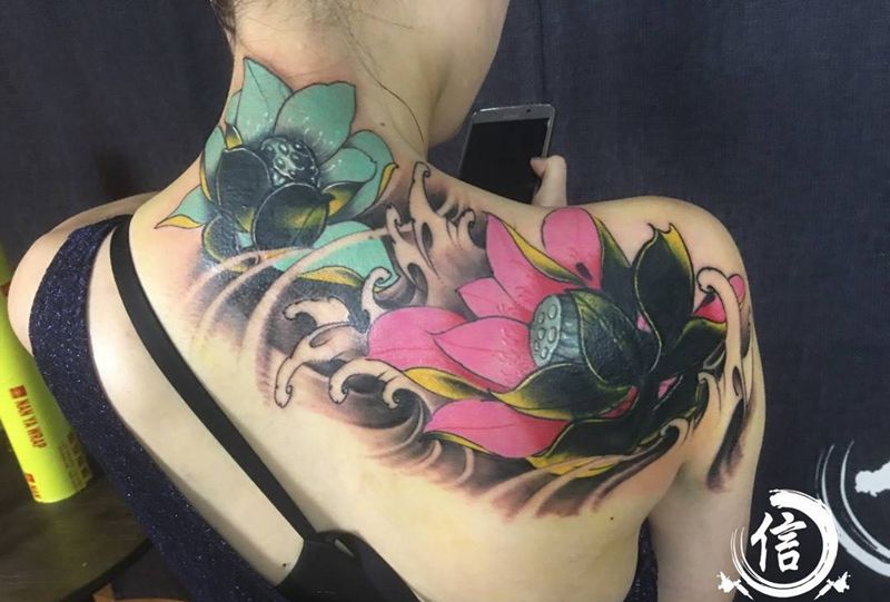 一组15张莲花纹身手