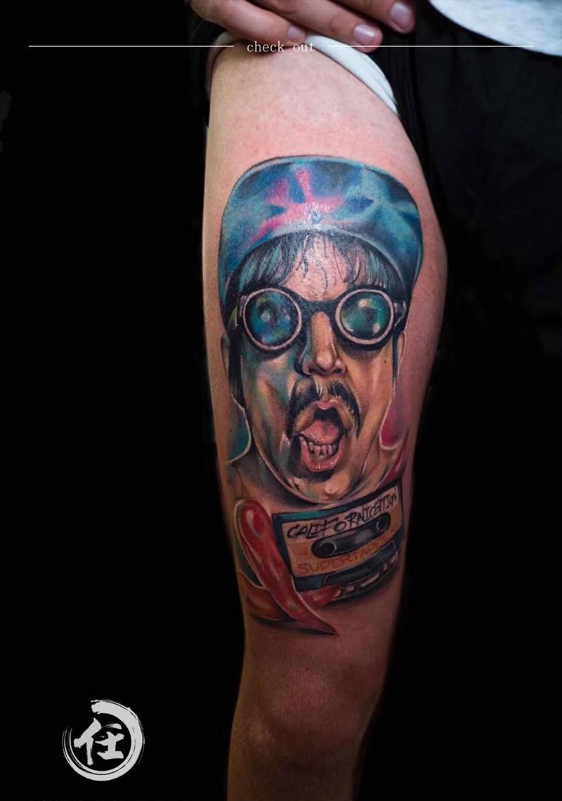 • T包小腿吹火男+阿多福纹身图片_腿部老传统新传统吹火男阿