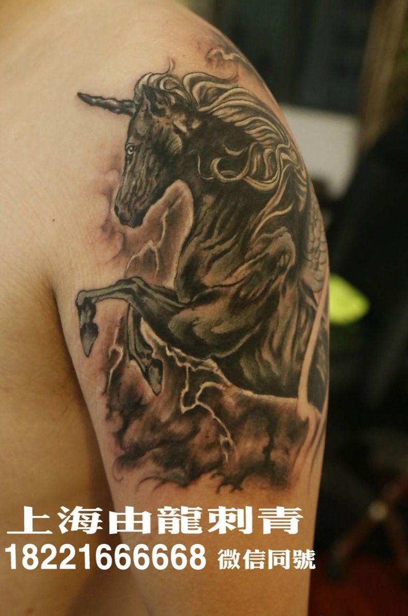 当前位置: 首页 >上海市纹身店-由龙纹身八佰伴工作室纹身图案>独角兽纹身图片