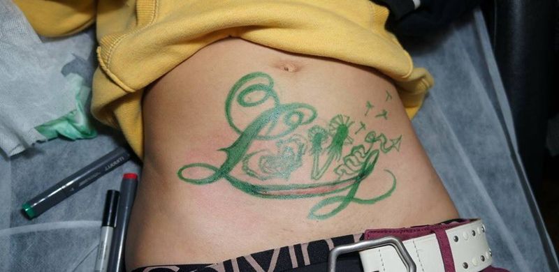 • T关于私处得爱!纹身图片_成品腹部清新字符图腾纹身图案