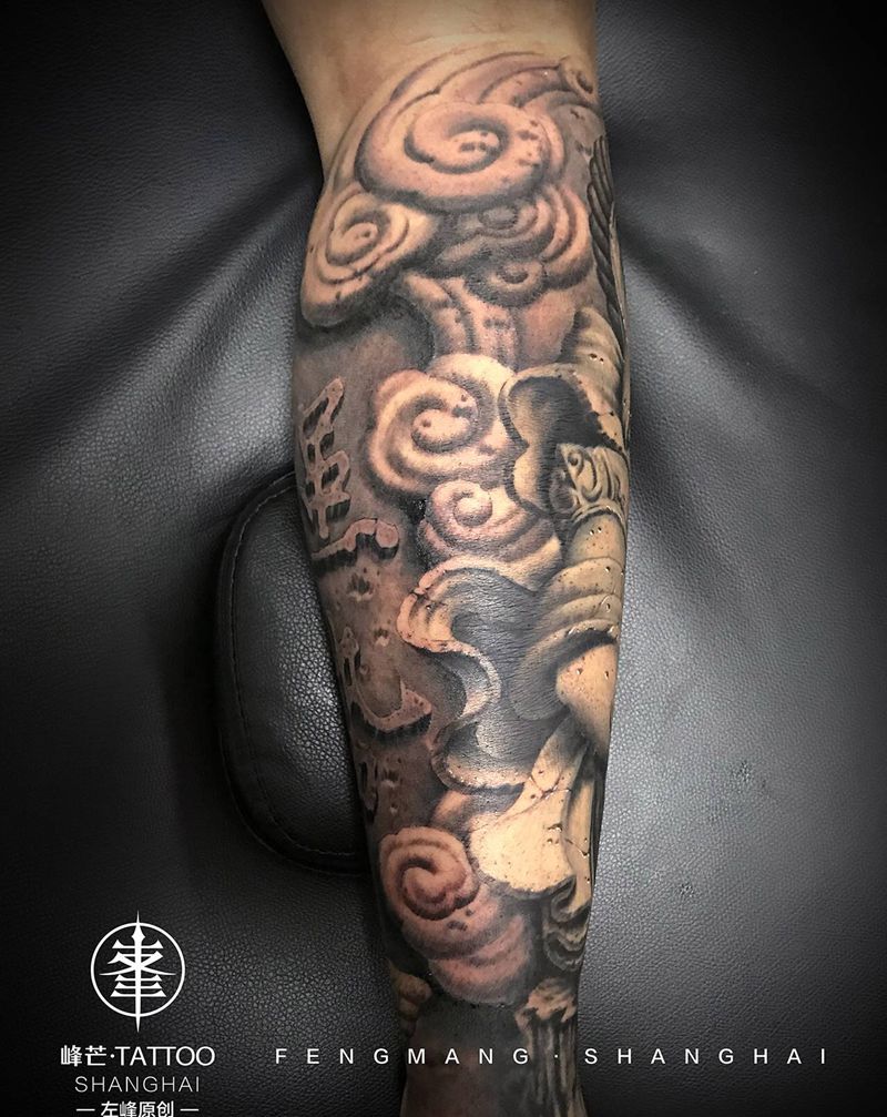 当前位置: 首页 >上海市纹身店-峰芒刺青纹身图案>象神石雕改造(原创)纹身图片_腿部背部新传统欧美写实象神石雕原创纹身图案