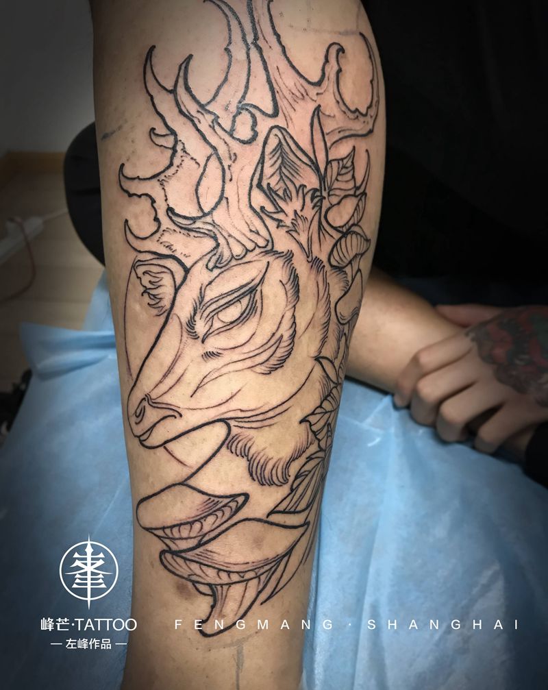 当前位置: 首页 >上海市纹身店-峰芒刺青纹身图案>麋鹿纹身图片_腿部New School动物鹿头梅花鹿纹身图案