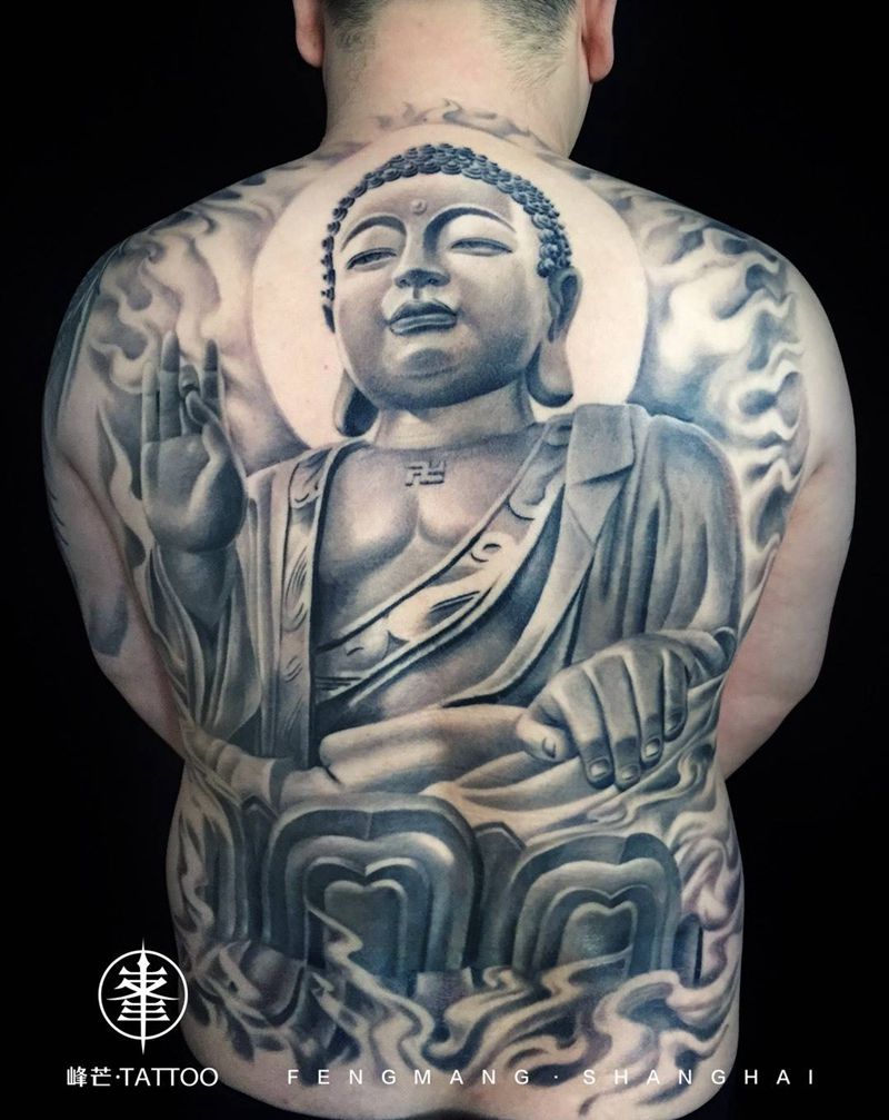 当前位置: 首页 >上海市纹身店-峰芒刺青纹身图案>大日如来(原创)纹身图片_背部欧美写实新传统如来佛雕塑纹身图案