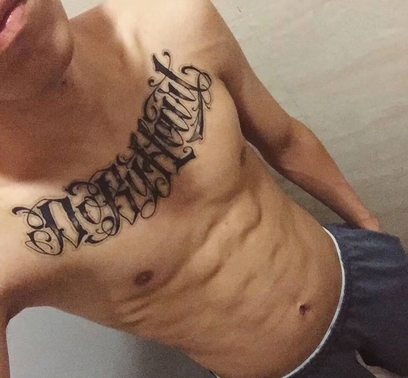 胸口花体字作品纹身图片_胸部花体字纹身图案
