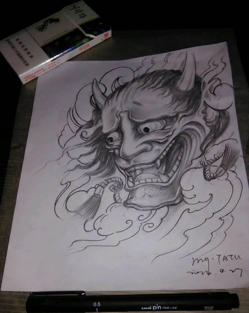 当前位置: 首页 >江苏省南京市纹身店-暮鼓刺青纹身图案>无战事画两笔(般若)纹身图片_原创手稿纹身图案