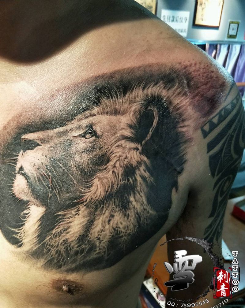 当前位置: 首页 >江苏省南京市纹身店-南京雪刺青纹身培训机构纹身图案>狮子纹身图片_胸部欧美写实纹身图案