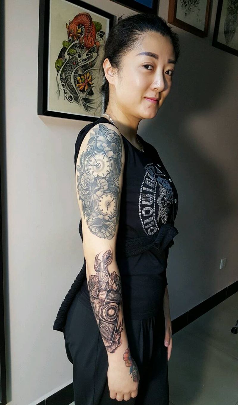 慢慢加就快成花臂了纹身图片_手臂欧美狂人刺青成品纹身图案