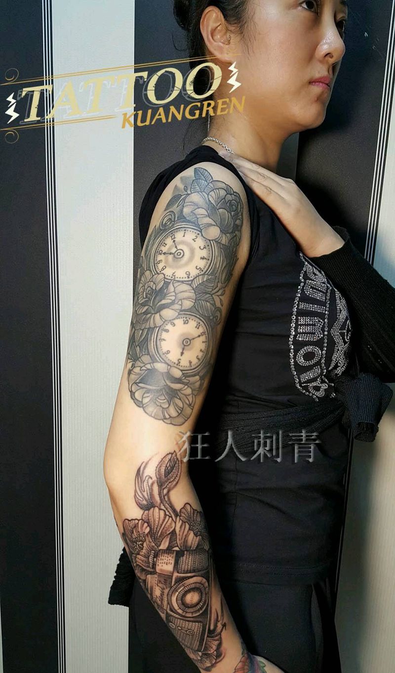 慢慢加就快成花臂了纹身图片_手臂欧美狂人刺青成品纹身图案