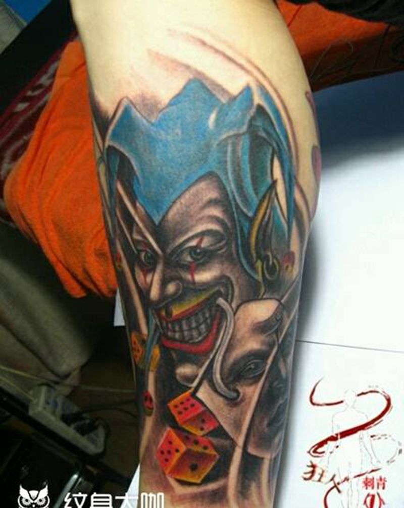 • T包小腿吹火男+阿多福纹身图片_腿部老传统新传统吹火男阿