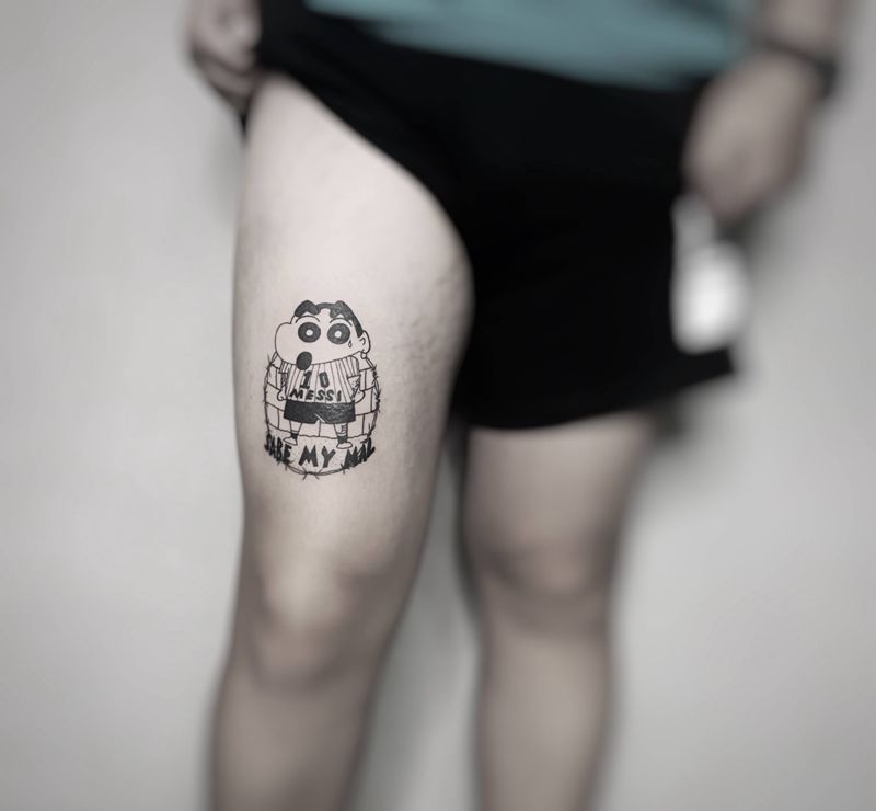 • T包小腿吹火男+阿多福纹身图片_腿部老传统新传统吹火男阿