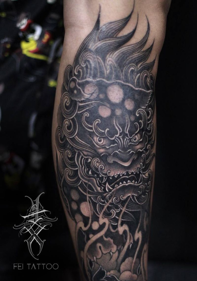 当前位置: 首页 >江苏省南京市纹身店-南京斐刺青纹身图案>唐狮纹身图片