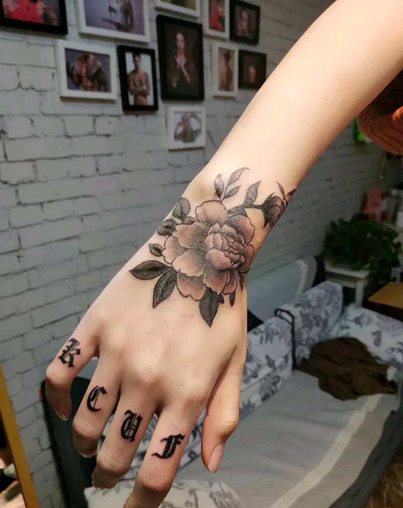 手背花纹身图片_手部欧美写实纹身图案