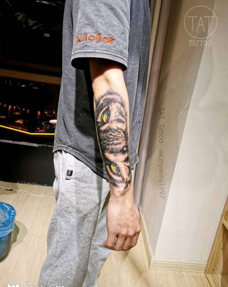 当前位置: 首页 >江苏省南京市纹身店-TAT 刺青纹身图案>写实老虎作品纹身图片_手臂欧美写实老虎纹身图案