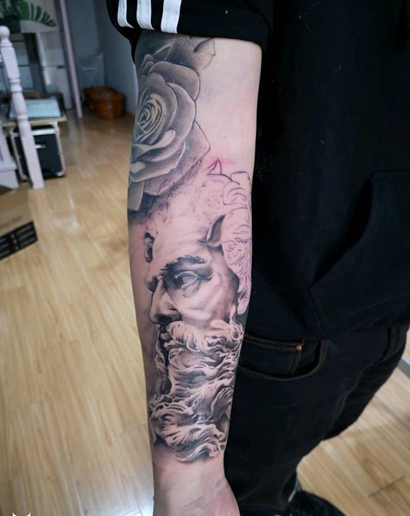 欧美雕塑纹身图片_手臂欧美写实纹身图案