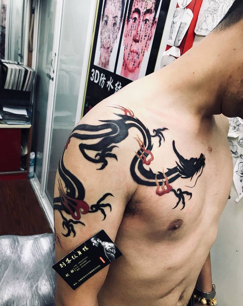 当前位置: 首页 >江苏省无锡市纹身店-刺客纹身纹身图案>图腾过肩龙纹身图片